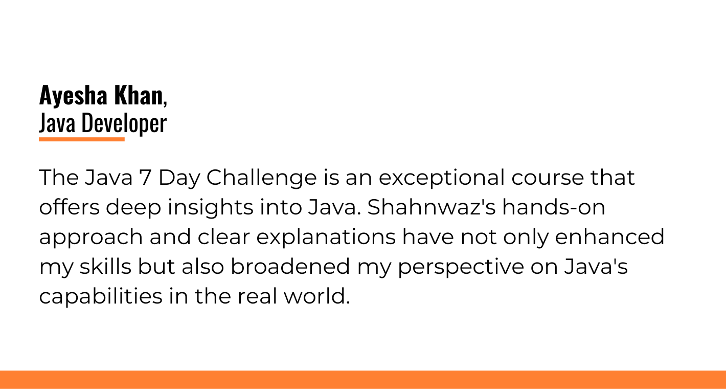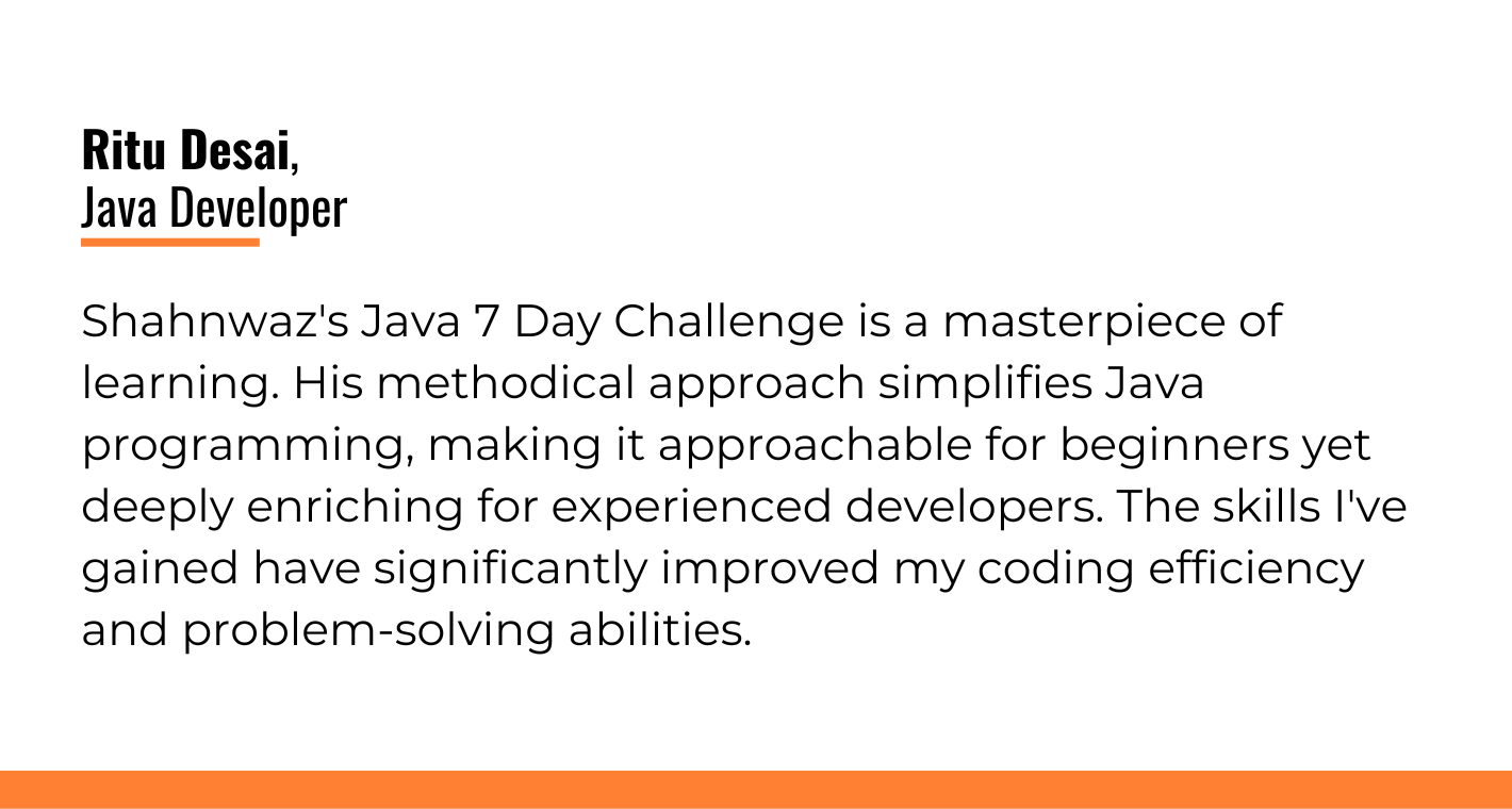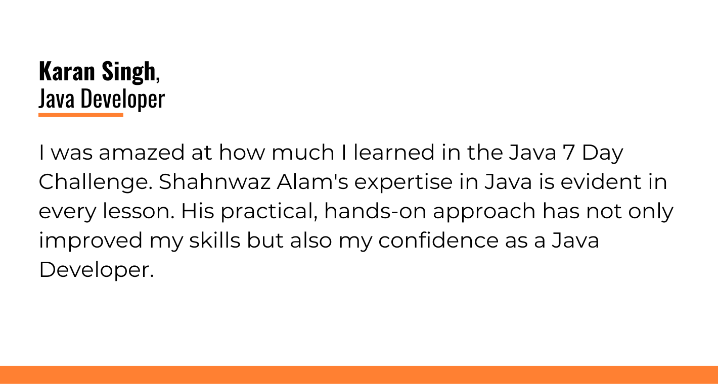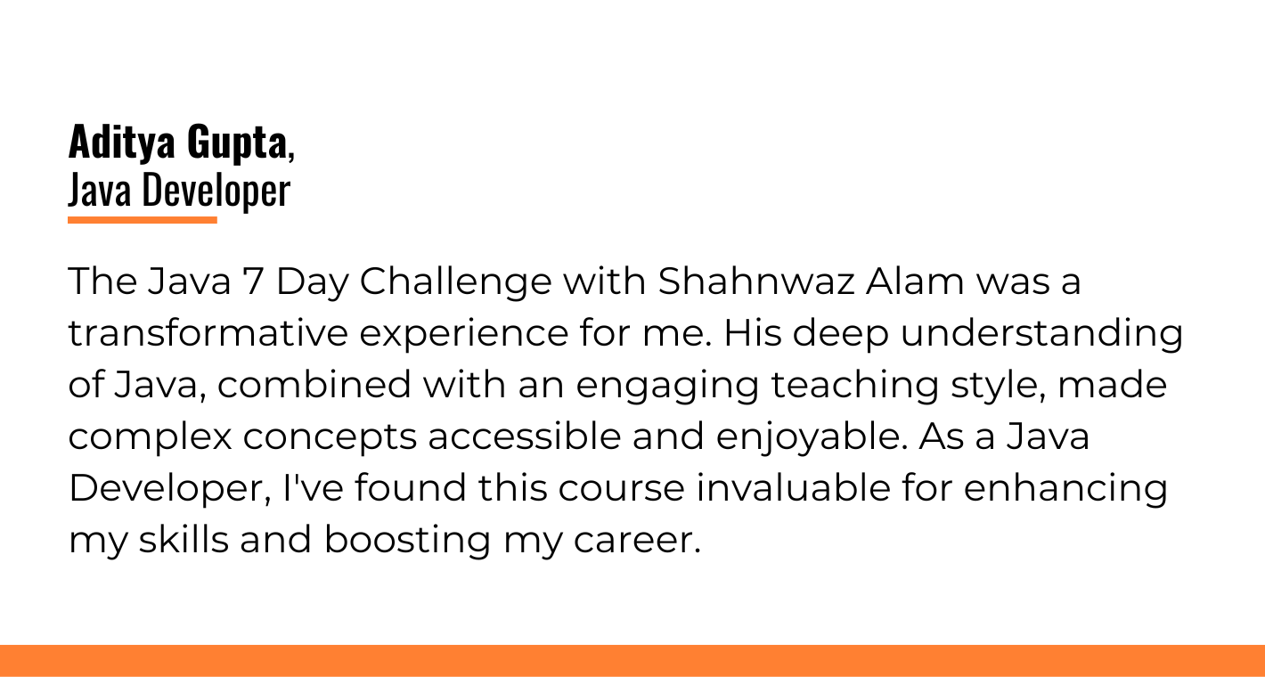 As the founder of the Java 7 Day Challenge, Shahnwaz brings practical knowledge and entrepreneurial insights. His initiative in creating this intensive program highlights his commitment to transformative education in the field of Java programming.